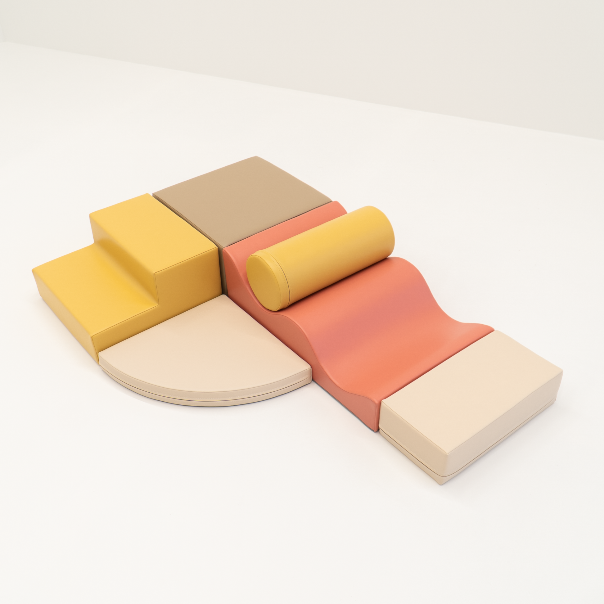 De stevige maar zachte vormen bieden een veilige omgeving om te kruipen, klimmen, balanceren en ontdekken. Dankzij de zachte pastelkleuren krijgt elke speelruimte een rustige, speelse uitstraling.